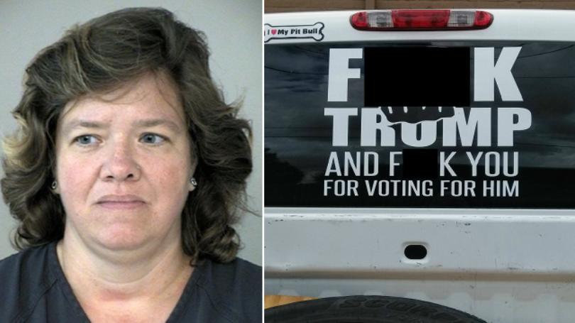 A truck owner with a message to President Donald Trump and his voters that included the F-word was released on bond after she was arrested for an outstanding warrant.